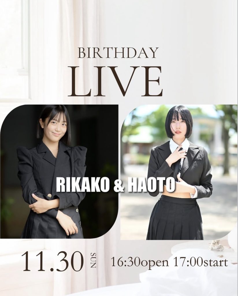 11/30(日)にHAOTO&新メンバーRIKAKO生誕祭ライブを行います。