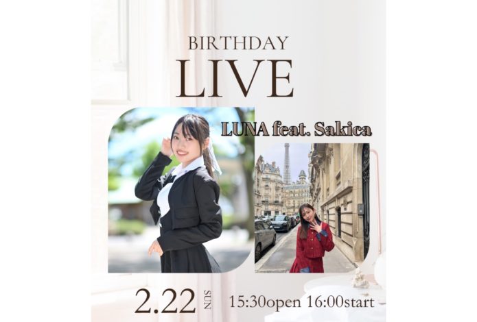 2/22(日)にLUNA生誕祭 feat. Sakicaのライブを行います。この日限りのメンバー同士のスペシャルコラボをぜひお見逃しなく!!おめでとうのご声援をお願いします*場所:角盤町4丁目スタジオ(角盤TSUTAYA 3F)時間:15:3…